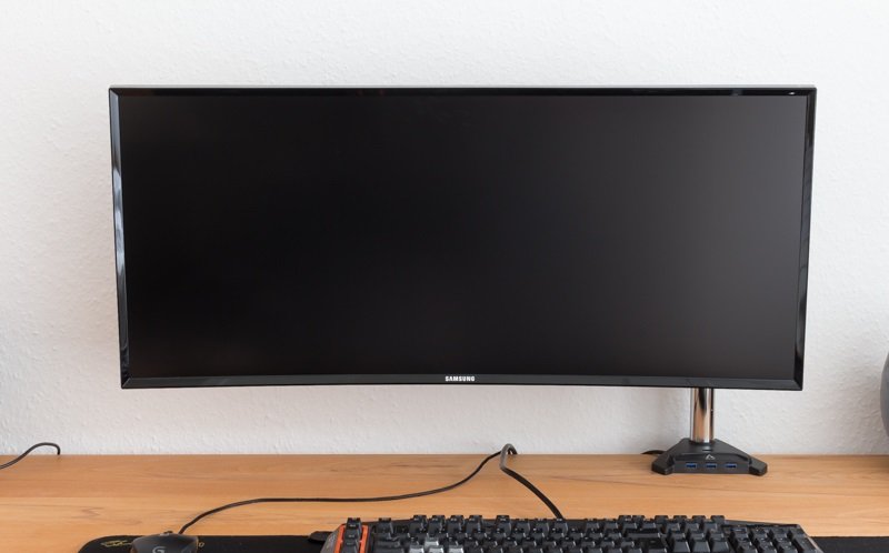 Die Spezifikationen zeigen, dass bei diesem Monitor-Arm die Größe und das maximale Gewicht etwas geringer ausfallen. Mit maximal 38 Zoll und 8 kg dürfte das Produkt aber trotzdem für die meisten aktuellen Geräte auf dem Markt ausreichend dimensioniert sein. Wir testen den Monitor-Arm ebenfalls mit unserem 34 Zoll großen Ultrawide-Monitor, der etwa 7,5 kg wiegt.