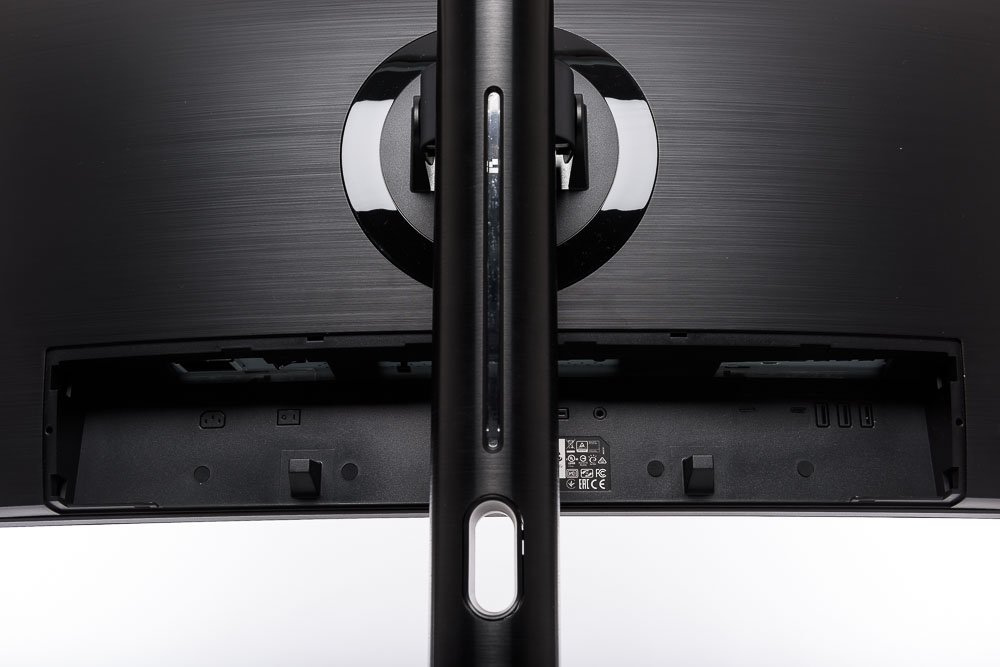 Über die Öffnung im Standbein können die Kabel sehr gut gebündelt nach hinten abgeführt werden. Dank der beiliegenden Abdeckung lassen sich die Anschlüsse perfekt kaschieren, und auch die Rückseite bleibt ein Hingucker.