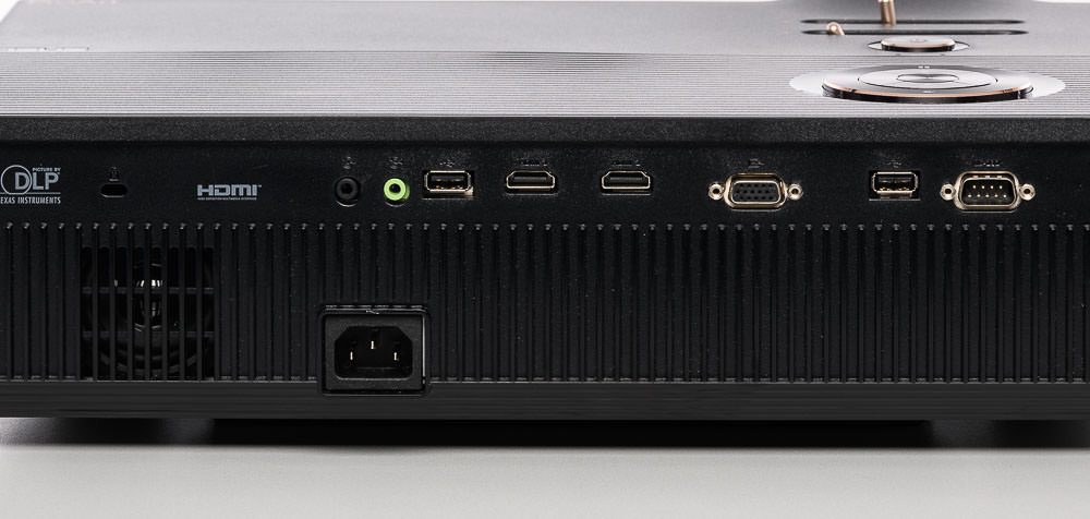 An der Unterseite besitzt der Projektor Bohrungen für eine Deckenmontage. Die Bildlage kann dazu im Menü von Tisch- auf Deckenprojektion umgestellt werden, auch Rückprojektion ist in beiden Positionen möglich. Eine entsprechende Halterung ist als optionales Zubehör erhältlich.