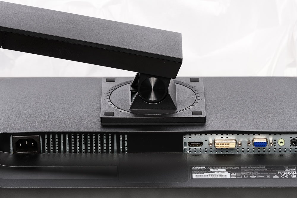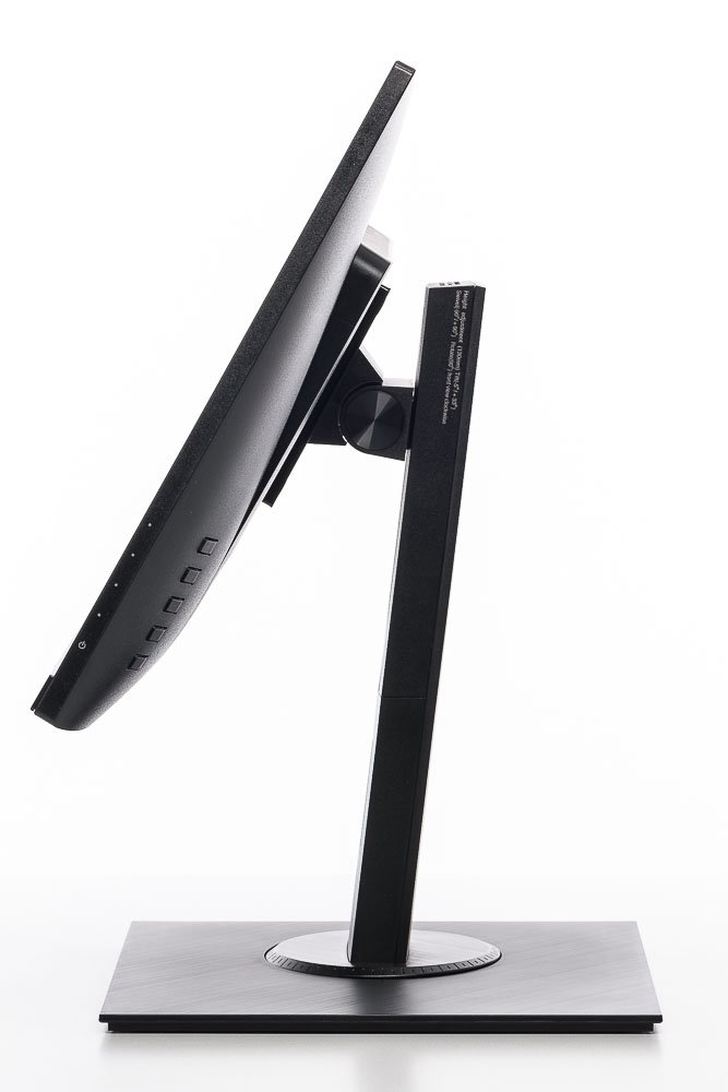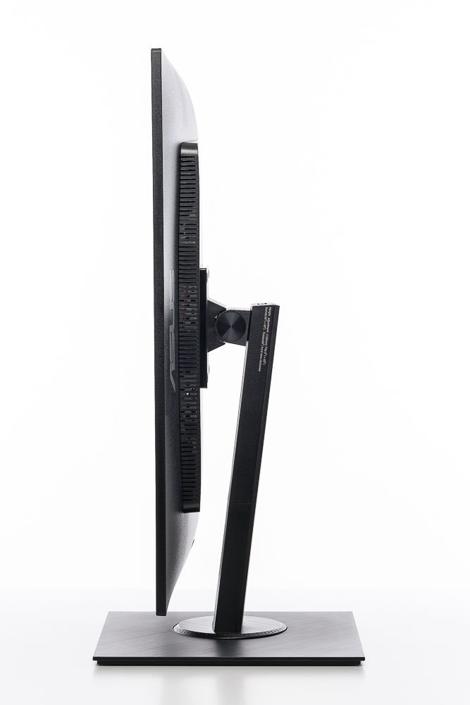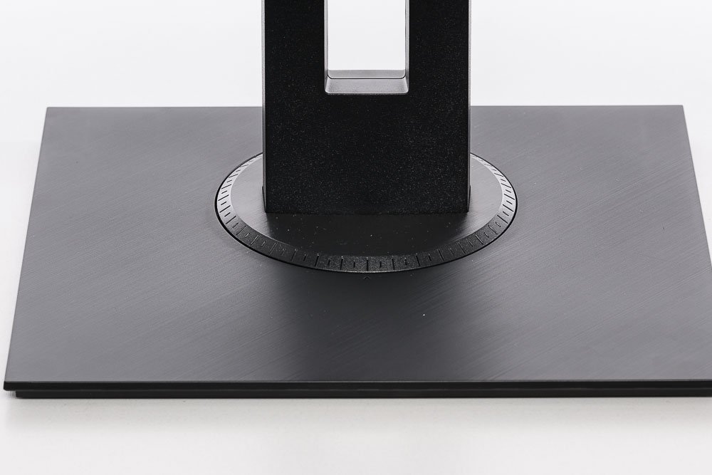 Für das seitliche Verdrehen finden wir im Standbein sogar eine Grad-Einteilung, die wir sonst eigentlich nur von Geräten der ProArt-Serie kennen. Erstaunlicherweise ist sie sogar deutlich präziser als zum Beispiel beim ASUS PA248QV, den wir kürzlich im Test hatten. Abgesehen von der Farbgebung scheint das Standbein auch identisch zu sein.