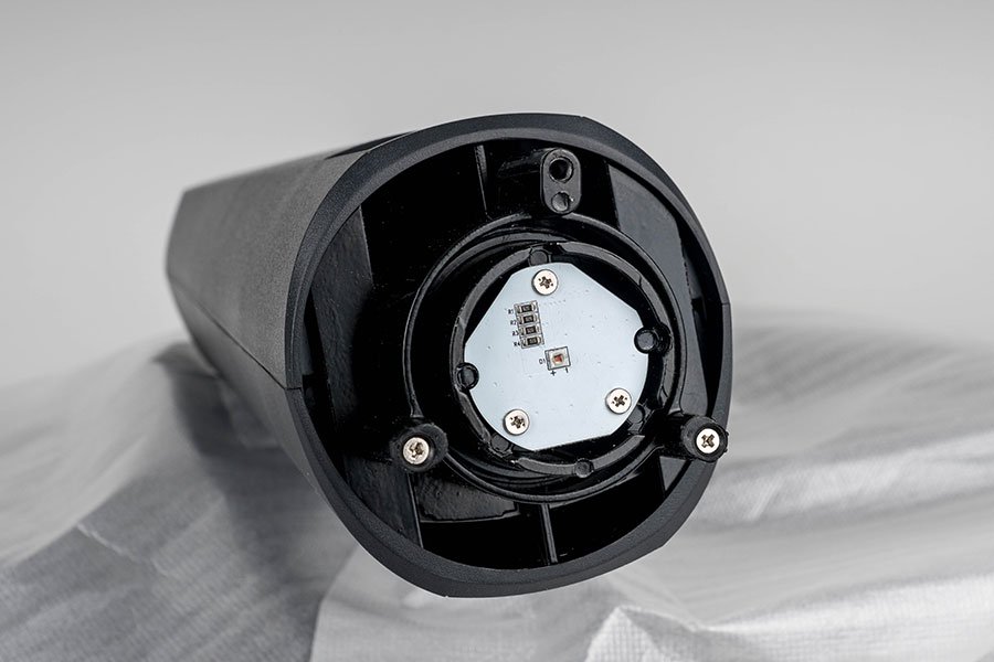 Zum Schluss wird die beiliegende Projektionsabdeckung aufgesteckt, die über mehrere Nasen einrastet.