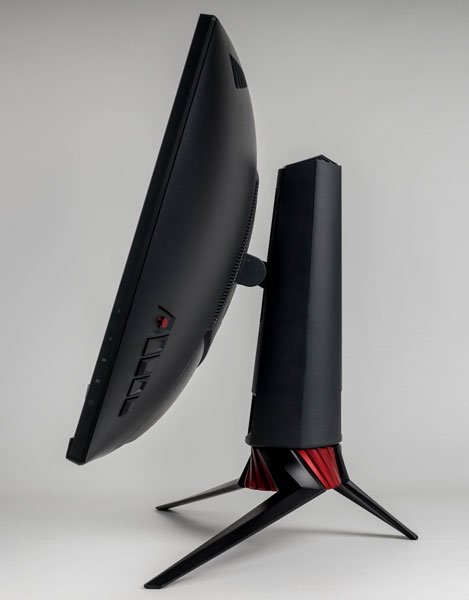 Die ROG-Strix-Modelle haben sich seit der Einführung 2017 nicht oder nur unwesentlich geändert. Bei allen Modellen dieser Baureihe kommt hochwertiger Kunststoff in der Farbe Anthrazit zum Einsatz, aus dem der größte Teil des Displays besteht. Die Rückwand zeigt den typischen futuristischen ROG-Look, der leicht abgewandelt auch bei den ROG-Swift-Displays mit G-Sync-Technik zum Einsatz kommt.