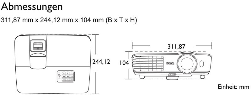 Mit seinen Abmessungen von 312 x 104 x 244 (B x H x T in mm) und einem Gewicht von 2,85 kg ist der BenQ W1080ST+ zwar nicht mehr primär auf Portabilität ausgerichtet, aber immer noch gut transportabel.