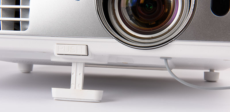 An Stelle der sonst üblichen vier Standbeine setzt der W1080ST+ nur auf ein Dreibein. Das ist grundsätzlich ausreichend, allerdings sind nur zwei davon höhenverstellbar. Im voll eingefahrenen Zustand sind sie nicht gleich lang, so dass man auch bei perfekt waagrechter Aufstellfläche erst justieren muss, um das Bild auszurichten.