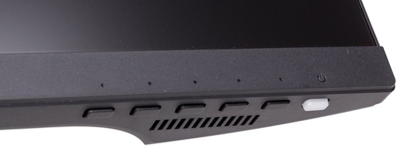 Die Knöpfe für die Bedienung des OSDs befinden sich unter dem vorderen Displayrahmen auf der rechten Seite. Auf dem Rahmen selber sind nur sehr dezente Punkte angebracht worden, die die Tasten erahnen lassen. Sobald auf eine Taste gedrückt wird, wird im OSD darüber eingeblendet, welche Funktionen diese ausführt. Die Tasten selber besitzen eine angenehme Größe und einen guten Druckpunkt. Sie ermöglichen ein bequemes Navigieren durch die Menüs.