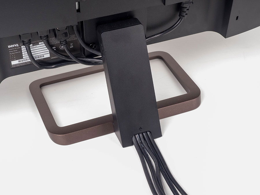 Der BenQ EX2780Q verfügt über eine ordentliche Zahl an Schnittstellen. Mit zwei HDMI-2.0-Eingängen und einem DisplayPort 1.4 ist man eigentlich schon recht gut bedient. Zusätzlich existiert ein USB-C-Anschluss, der zur Datenübertragung dient. Durch ihn lässt sich das Display mit Laptops oder geeigneten Handys verbinden. Für Kopfhörer steht zudem eine Klinkenbuchse für 3,5-mm-Klinkenstecker zur Verfügung. Da das Gerät weder eine Pivot-Funktion hat noch über eine Höhenverstellung verfügt, ist ein Kabelwechsel alles andere als ein Vergnügen. Erschwerend kommt hinzu, dass die Kabelführung in vertikaler Richtung verläuft.