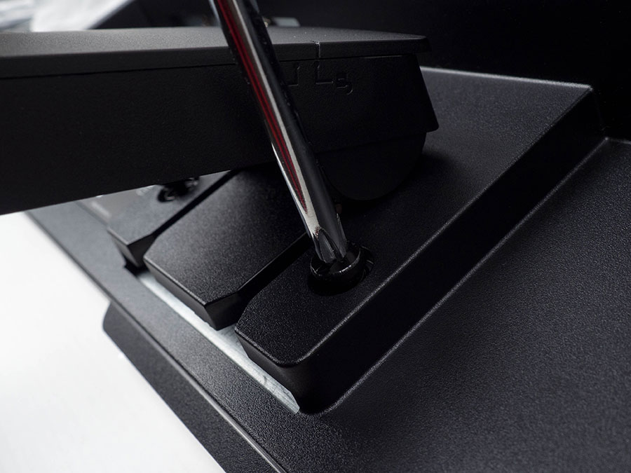 Auch die Verarbeitung ist auf einem sehr guten Niveau, da die eingesetzten Kunststoffe hochwertig erscheinen und das schmale Rahmenband gleichmäßig am Panel-Rand vorbeiläuft. Aufgrund der sehr begrenzten ergonomischen Möglichkeiten lässt sich zur Mechanik allerdings nicht viel sagen.