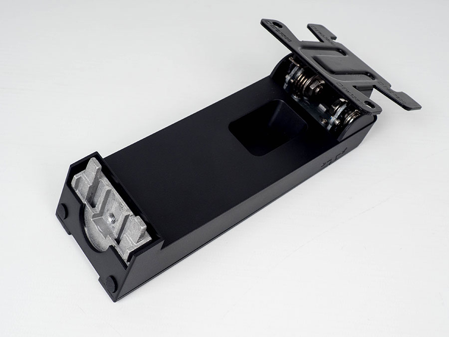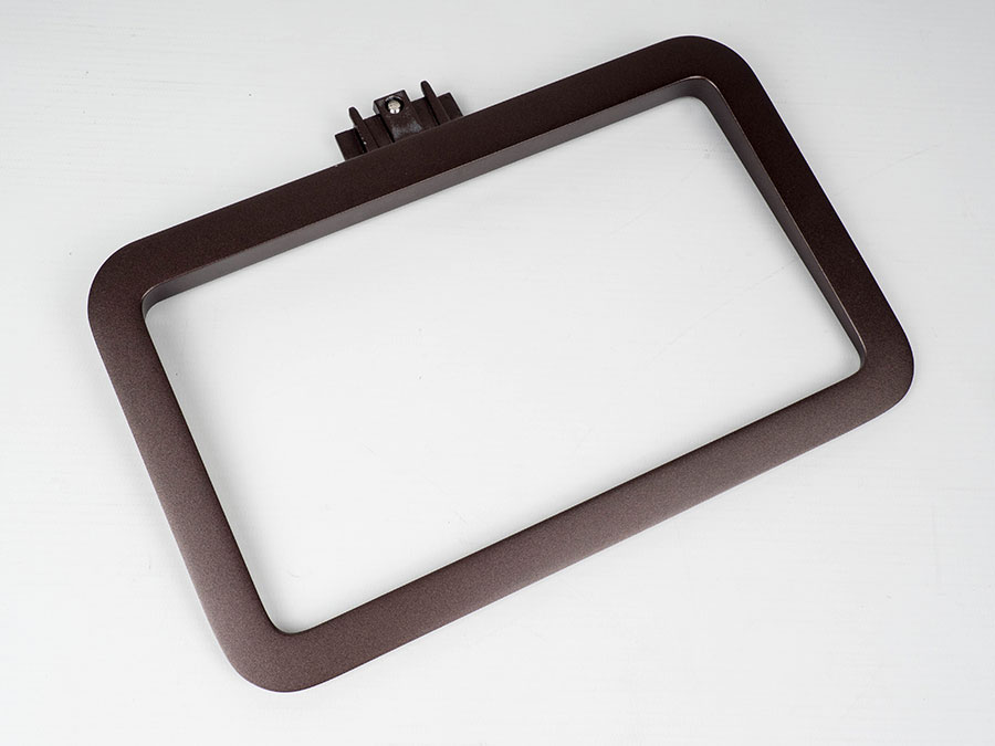 Nach Entfernung der Blende und der vier Schrauben innerhalb der Vorrichtung lässt sich das Display auch an alternativen Tragesystemen mit VESA-100-Standard betreiben.