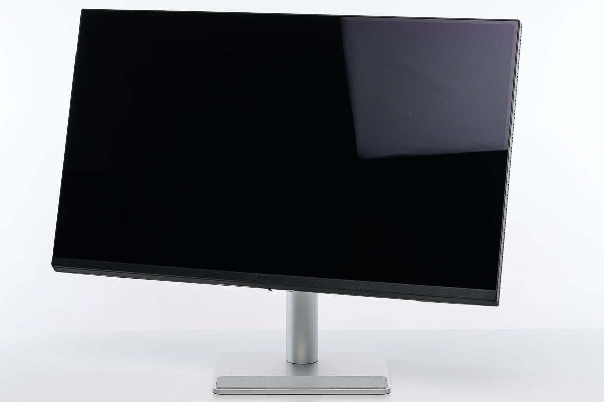 In der Praxis relativiert sich das aber durch die sehr gelungene Mechanik: Alle Justierungen gelingen leichtgängig, zugleich aber präzise und ausreichend stabil. Auch ohne Gasdruckfeder wirkt die Konstruktion hochwertig, was sich nicht nur im Bewegungsablauf, sondern selbst akustisch bemerkbar macht. Der Stand vermittelt Solidität, ohne schwergängig zu sein. Laut Handbuch bietet der Standfuß 115 mm Höhenverstellung sowie eine Neige-, Dreh- und Pivot-Funktion.