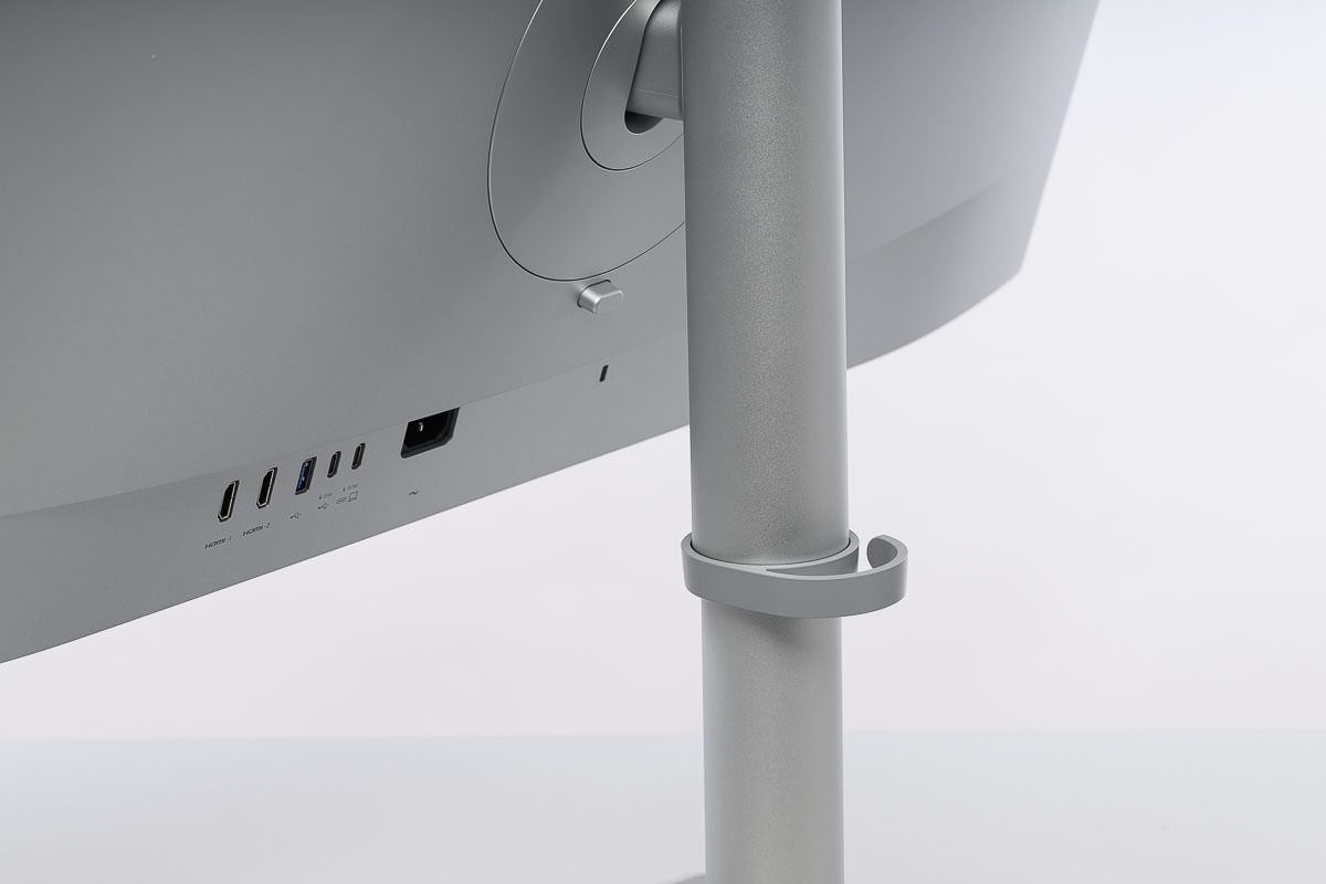 Die wichtigsten Rahmendaten passen zu dieser Positionierung: 31,5 Zoll, 3840 × 2160 Pixel, IPS, 60 Hz, 99 % sRGB, 97 % DCI-P3, 1300:1-Kontrast, DisplayHDR 600 und eine Nano-Gloss-Beschichtung. Hinzu kommen zwei USB-C-Anschlüsse mit 90 Watt bzw. 15 Watt Ladeleistung, Lautsprecher sowie ein ergonomischer Standfuß mit 115 mm Höhenverstellung, Pivot-, Neige- und Drehfunktion. Das liest sich nach einem rund ausgestatteten Desktop-Monitor, dessen Besonderheit weniger in Einzelmerkmalen als in der Summe aus Mac-Fokus, glänzender Oberfläche und Komfortintegration liegt.