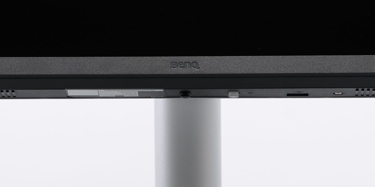 Die Bedienung des BenQ MA320UP erfolgt über eine mittig unter dem Rahmen sitzende 5-Wege-Steuerung. Ergänzt wird sie durch die Ein-/Aus-Taste. Die Lösung ist grundsätzlich ordentlich umgesetzt und für die wenigen direkt am Gerät erreichbaren Funktionen auch ausreichend. Da BenQ den MA320UP jedoch konsequent auf die Steuerung per Software auslegt, kommt dem Bedienelement in der Praxis eher die Rolle einer Notsteuerung zu als die eines vollwertigen OSD-Ersatzes. Genau das passt zwar zur konzeptionellen Ausrichtung des Monitors, nimmt der Hardware-Bedienung allerdings auch viel von ihrer Eigenständigkeit.
