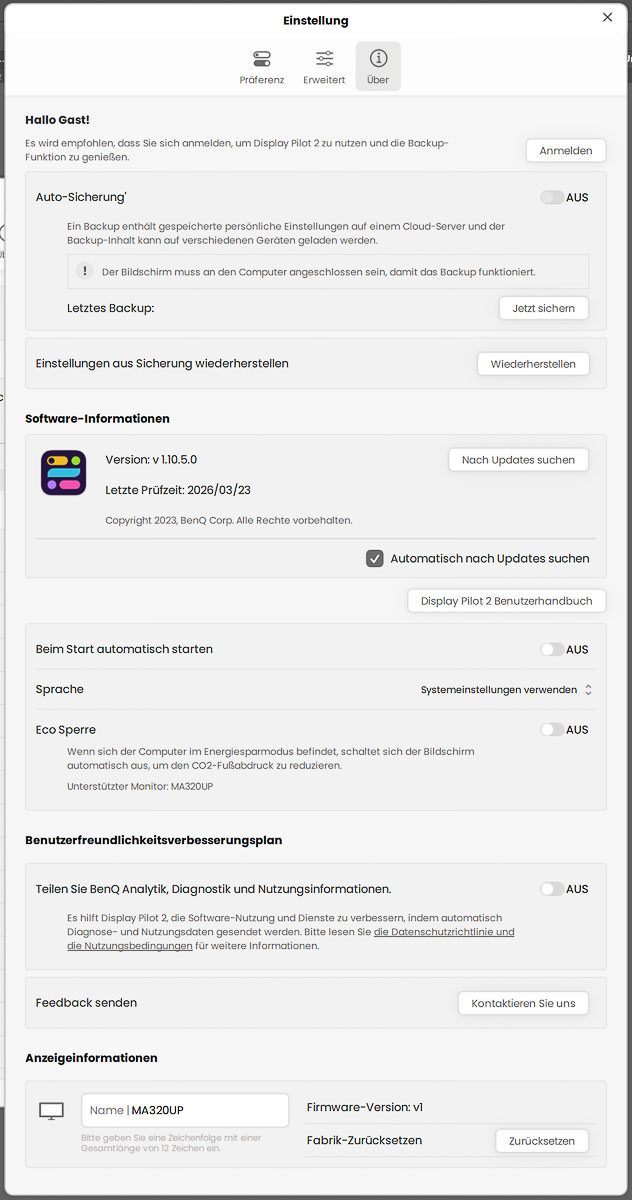 Schlussendlich passt Display Pilot 2 konzeptionell gut zum BenQ MA320UP und führt dessen Apple-nahe Ausrichtung konsequent weiter. Die eigentliche Schwäche liegt nicht in der Software selbst, sondern in der starken Abhängigkeit des Monitors von ihr. Ein Gerät dieser Klasse gibt ohne Display Pilot 2 nur einen deutlich eingeschränkten Teil seiner Möglichkeiten preis – und genau deshalb wiegen Zustimmungspflichten, Datenerhebung und teils versteckt platzierte Einstellungen hier schwerer als bei gewöhnlicher Zusatz-Software.