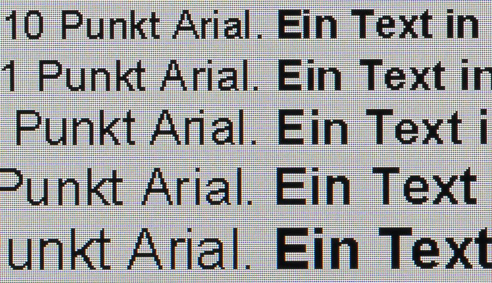 In allen interpolierten Auflösungen sind die Lesbarkeit von Texten und die Abbildung der Testgrafik – dem Skalierungsgrad entsprechend – gut bis sehr gut. Die unvermeidlichen Interpolationsartefakte fallen gering aus. Auch Texte mit fetten Buchstaben bleiben gut leserlich.