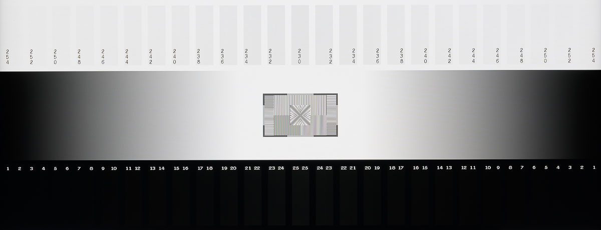 Der Grauverlauf des BenQ PD2770U hinterlässt insgesamt einen sehr guten Eindruck. Die Abstufungen wirken neutral, Farbschimmer sind nicht zu beobachten, und auch ein seitlicher Vergleich zeigt keine erkennbaren Unterschiede zwischen linker und rechter Bildhälfte. Besonders positiv fällt die Differenzierbarkeit in den dunklen Bereichen auf: Während die hellen Stufen vollständig sichtbar bleiben, werden die dunklen Abstufungen bis einschließlich Stufe 2 noch klar durchgezeichnet. Selbst die dunkelste Stufe ist mit etwas Mühe weiterhin erkennbar. Das ist ungewöhnlich gut und hebt den PD2770U in dieser Disziplin positiv hervor.