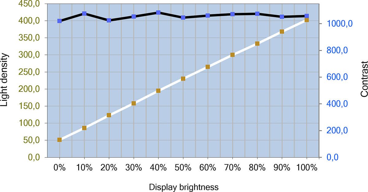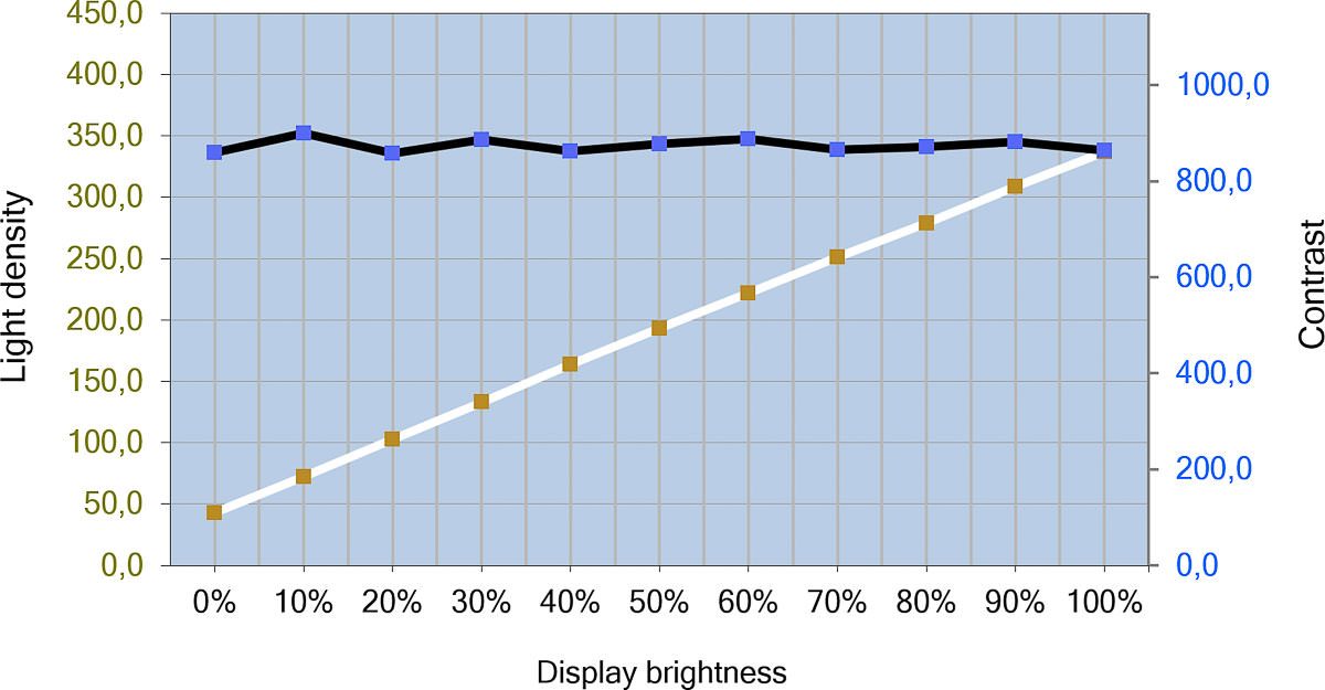 Die Herstellerangaben für Maximalhelligkeit, Kontrast und Stromverbrauch werden in den auf Homogenität optimierten Betriebsarten damit zwar nicht mehr erreicht, das ist bei aktiver Gleichförmigkeitskorrektur jedoch grundsätzlich nicht ungewöhnlich.