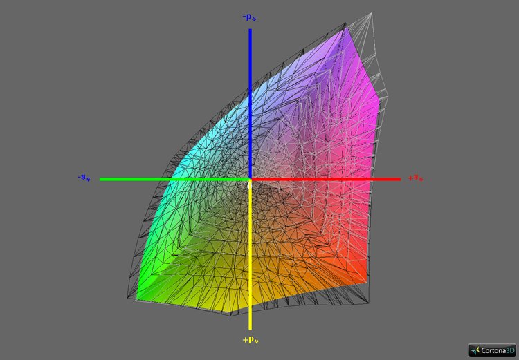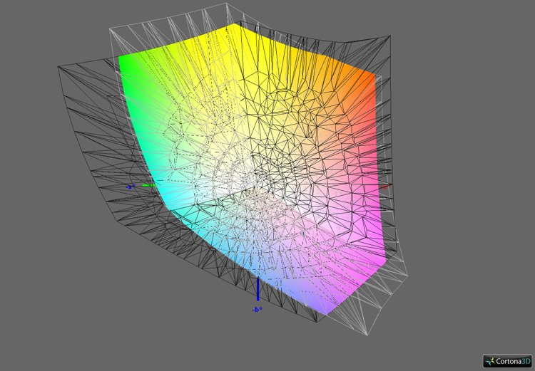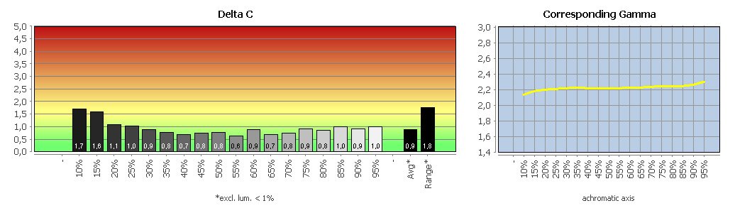 Der Adobe-RGB-Modus wurde dagegen nur sehr lieblos implementiert. Die Tonwertkurve entspricht weiterhin der sRGB-Charakteristik, was in den Tiefen zu erheblichen Fehlern führt. Außerdem kommt es nicht zu einem Gamut-Clipping. Damit werden zwar Tonwertabrisse in Out-of-Gamut-Farbbereichen vermieden, doch zum Preis vergleichsweise hoher Abweichungen in Tonwerten, die eigentlich ideal reproduziert werden könnten.