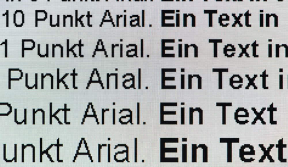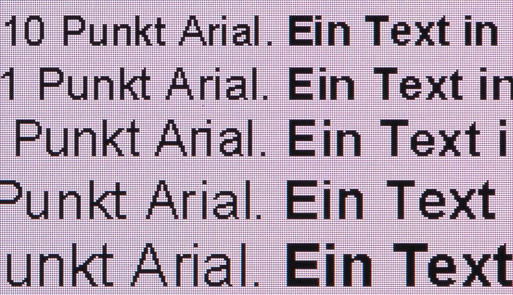 In allen interpolierten Auflösungen sind die Lesbarkeit von Texten und die Abbildung der Testgrafik – dem Skalierungsgrad entsprechend – gut bis sehr gut. Die unvermeidlichen Interpolationsartefakte fallen gering aus. Auch Texte mit fetten Buchstaben bleiben gut leserlich. Erfreulich ist obendrein, dass in fast allen getesteten Auflösungen problemlos eine verzerrungsfreie, maximal flächenfüllende Darstellung möglich ist.