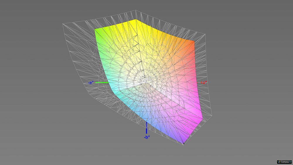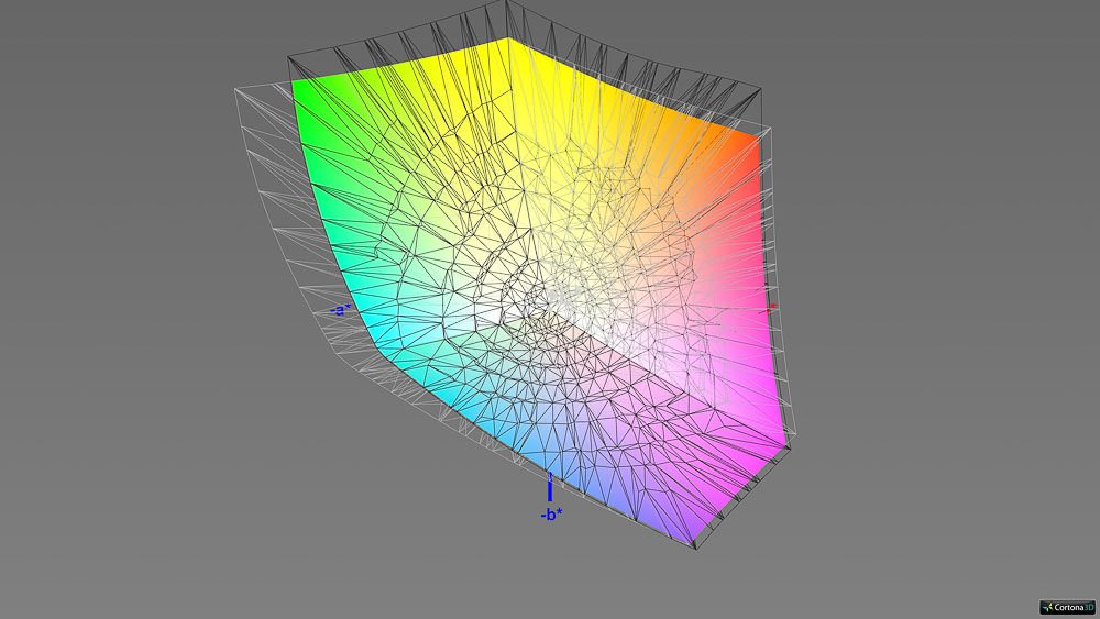 Die nachfolgenden Grafiken zeigen die Farbraumabdeckung nach der Hardware-Kalibration auf den nativen Farbraum des Gerätes: