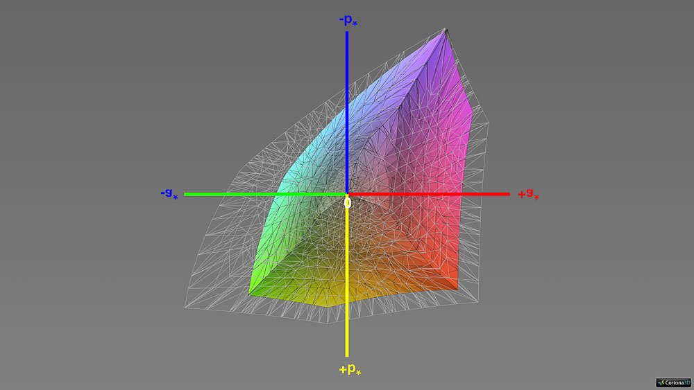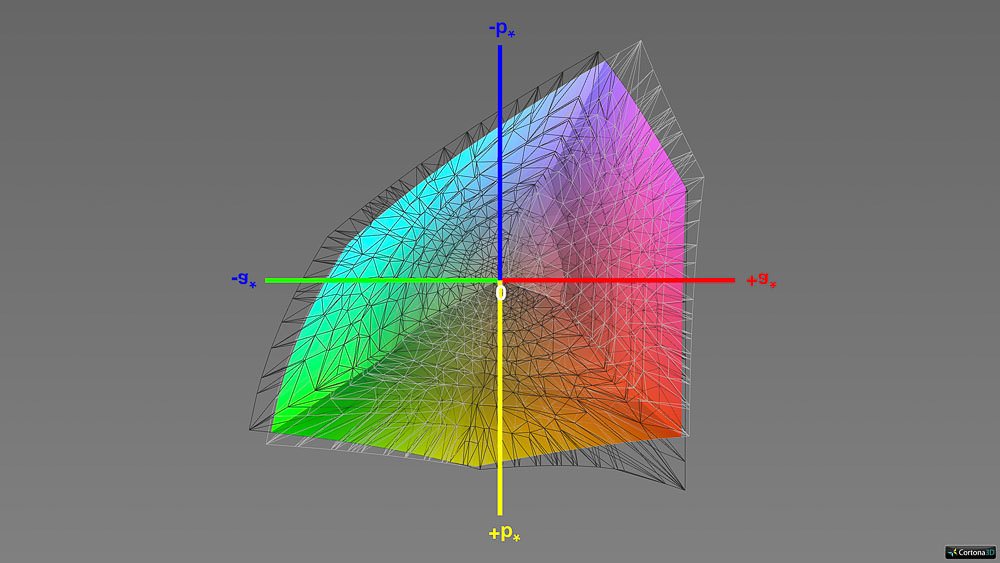 Abgesehen vom DCI-P3-Modus gelingt das also sehr gut. Der Zielfarbraum wird annähernd vollständig abgedeckt, ohne dass auf der anderen Seite nennenswerte Überdeckungen überständig bleiben.