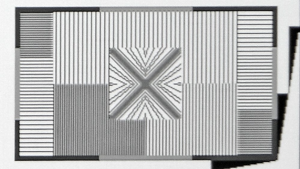 In den Ecken nimmt die Schärfe bei genauer Betrachtung ab. Feine Linien in Pixelauflösung vermag der BenQ TK705STi oben nicht vollumfänglich aufzulösen. Einfärbungen oder chromatische Aberrationen können wir hier hingegen nicht verzeichnen.