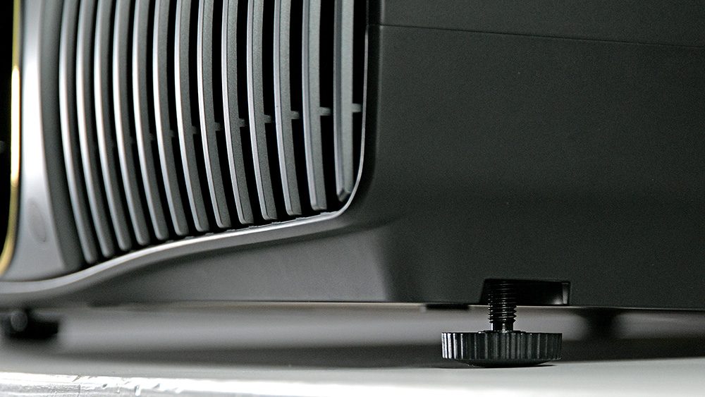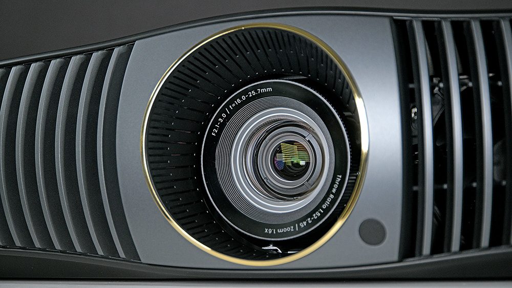 Das 1,6-fache Zoomobjektiv ist groß genug bemessen, um selbst Formatwechsel von Cinemascope (2,39:1) auf 16:9 durchzuführen. Darüber hinaus sind Fokus und Lens-Shift elektronisch gesteuert.