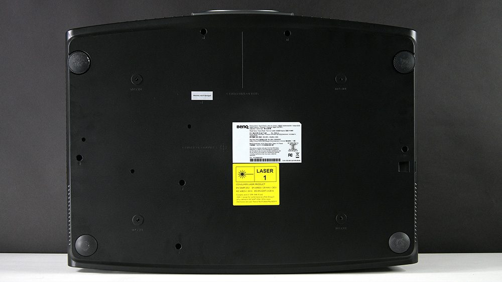 Auf der Unterseite können die Füße herausgedreht werden. Darüber hinaus sind Haltepunkte für die Deckenhalterung Ceiling Mount G3 vorhanden, die optional gegen 99 Euro Aufpreis im BenQ-Onlineshop erworben werden kann.