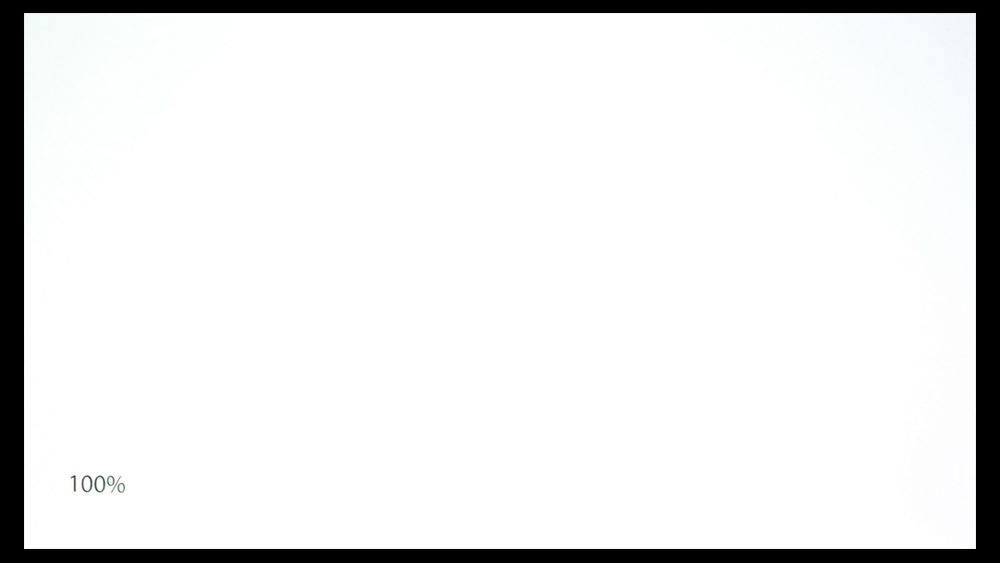 Wir untersuchen die Helligkeitsverteilung und die farbliche Homogenität mit einem 100 %-Weißbild, das an neun Punkten vermessen wird. Daraus berechnen wir zunächst die Helligkeitsabweichungen von der Mitte. Die Wahrnehmungsschwelle für Helligkeitsunterschiede liegt bei etwa 10 %.