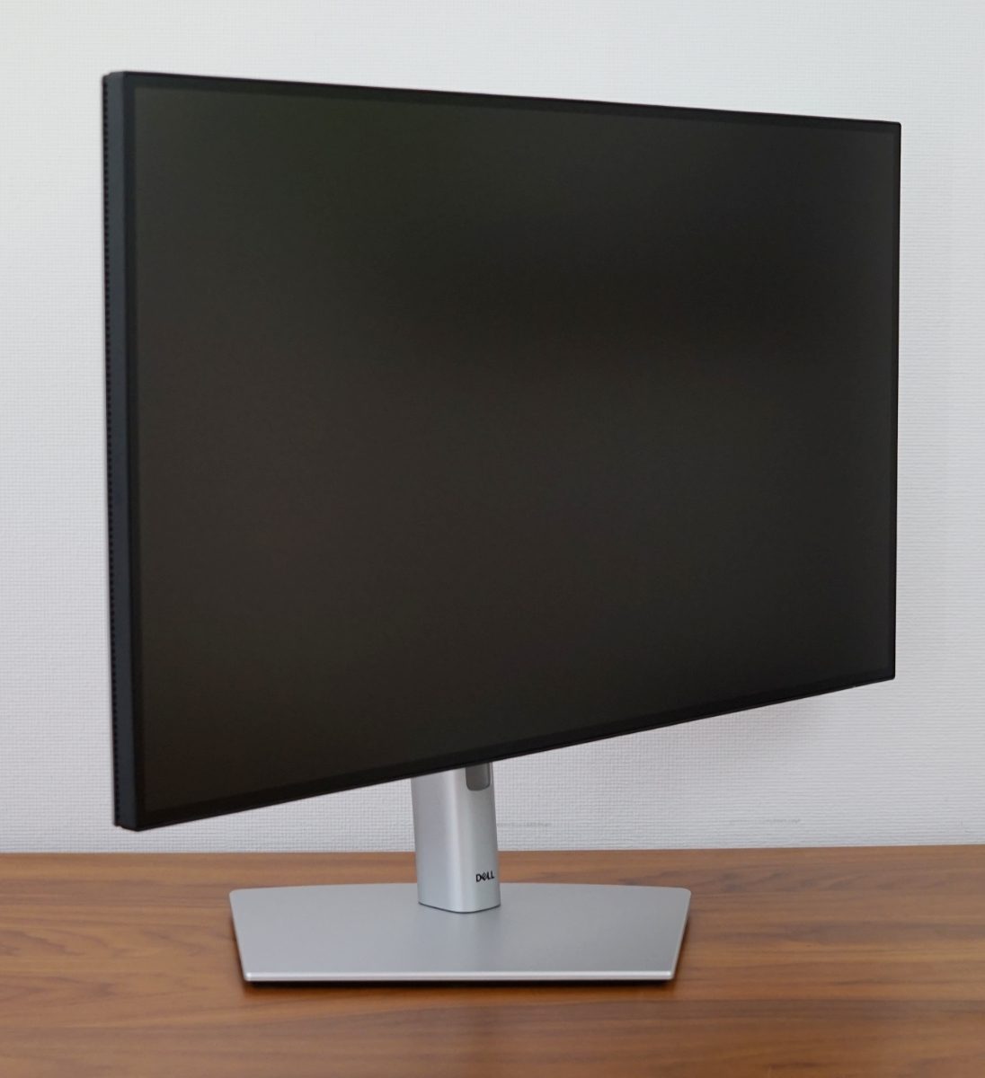 Das Standbein des Dell U2724DE ermöglicht eine Höhenverstellung von bis zu 15 cm. In der höchsten Einstellung beträgt der Abstand vom unteren Rahmen bis zur Schreibtischplatte 18,5 cm, während es in der niedrigsten Einstellung etwa 3,5 cm sind. Im unteren Bereich ist die Mechanik etwas schwergängig. Das Display kann um 45° nach links und rechts gedreht werden, wobei die Drehung über ein Gelenk im Standfuß realisiert wurde und sich das Standbein mitdreht und der Standfuß selbst nicht bewegt wird.