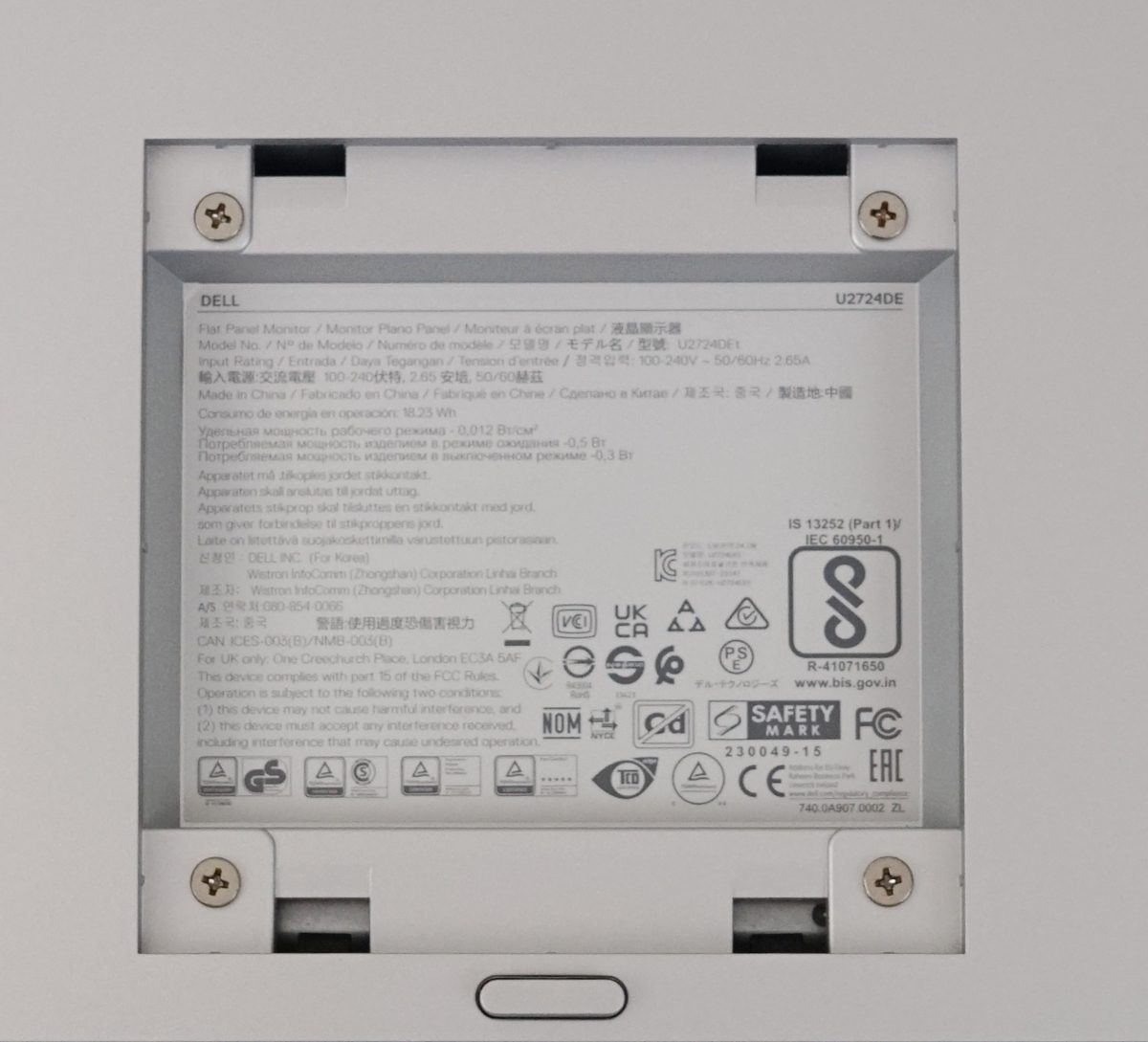 Dort sind auch die vier Schrauben, mit denen alternative VESA-100-Halterungen befestigt werden können, zu finden.