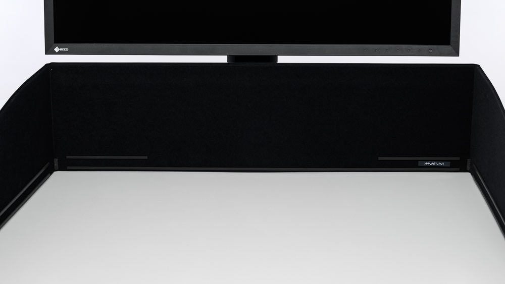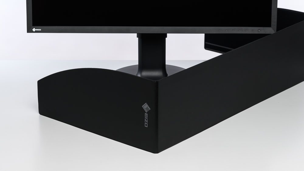 Die Innenseite ist mit einem samtartigen, lichtabsorbierenden Material ausgekleidet, das Reflexionen effektiv minimiert. Führungsschienen stellen sicher, dass die Blende passgenau am Gehäuse sitzt, und mehrere eingearbeitete Magnete erleichtern das Aufsetzen – ein Prinzip, das bereits bei früheren EIZO-Modellen erfolgreich eingesetzt wurde.