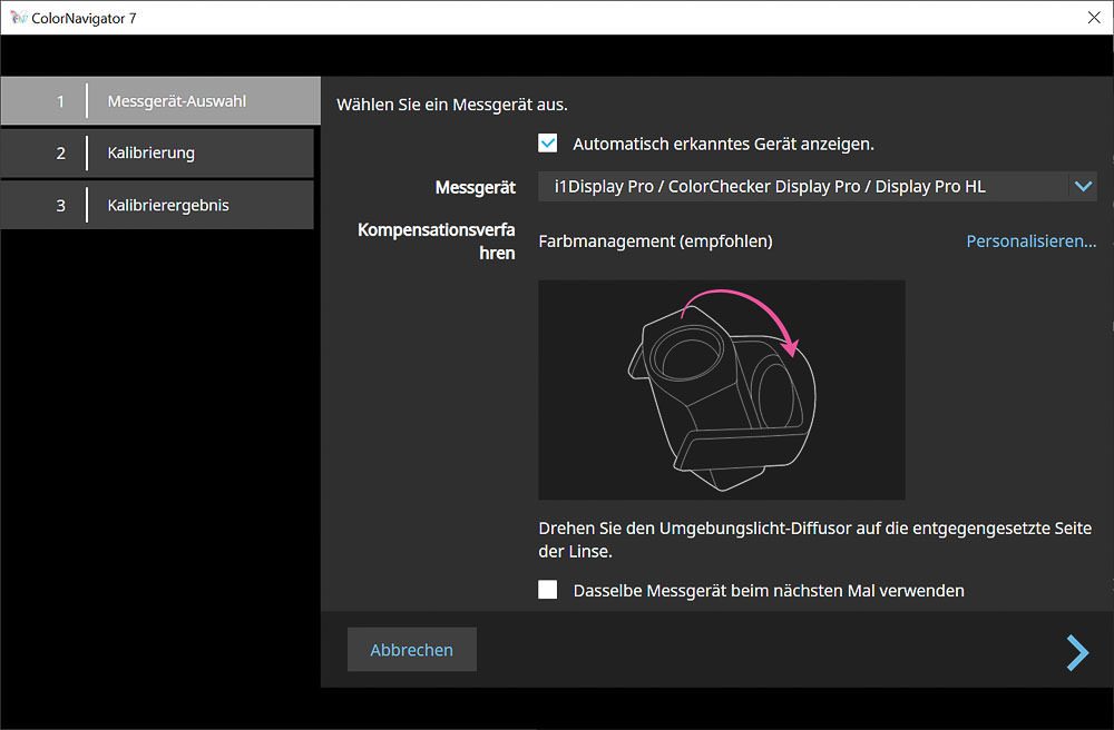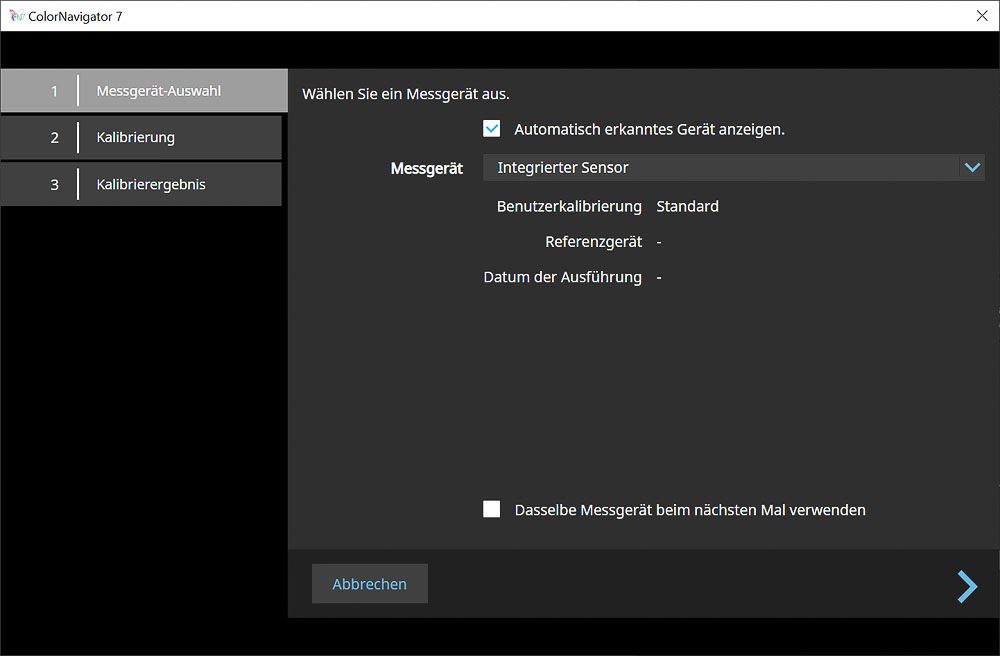 Die Kalibrierung mit ColorNavigator 7 verläuft zügig und anwenderfreundlich. Der EIZO CG3100X unterstützt sowohl den integrierten Messsensor als auch externe Kolorimeter. Angeschlossene Geräte werden automatisch erkannt und lassen sich direkt im Drop-down-Menü auswählen.
