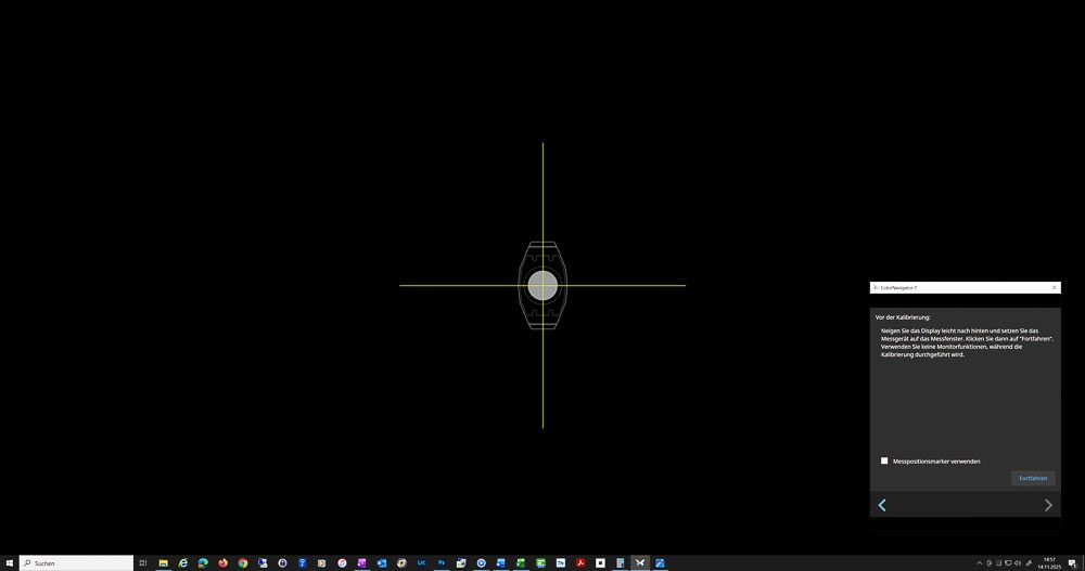 Ein großer Vorteil des integrierten Sensors: Während der Messung wird nur ein kleiner Bildschirmbereich genutzt. Der Rest des Desktops bleibt frei, sodass man während der Kalibrierung problemlos weiterarbeiten, recherchieren oder Dokumente lesen kann – ein Komfortmerkmal, das man bei vielen Konkurrenzlösungen vergeblich sucht.
