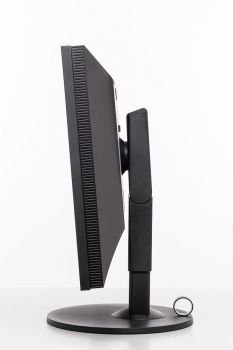 Eine Rotation von insgesamt 344° bietet sonst kaum ein Hersteller. Auch die Neigungsmöglichkeit ist mit -5 bis +35° sehr großzügig. Der 90°-Schwenk zum Arbeiten im Hochformat ist ebenfalls vorhanden.