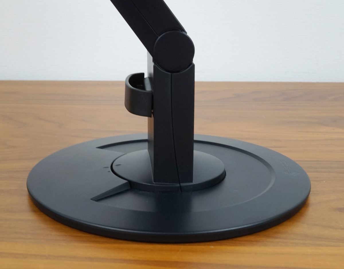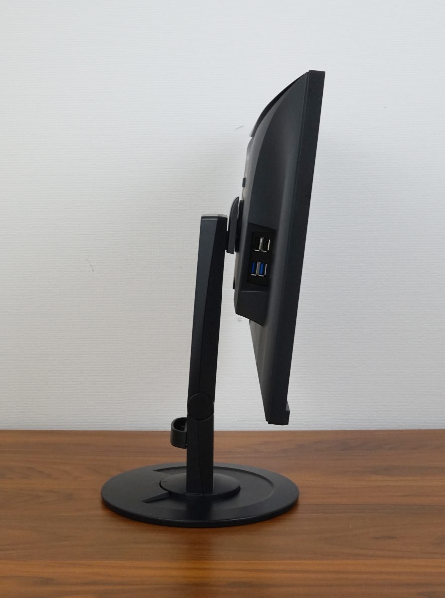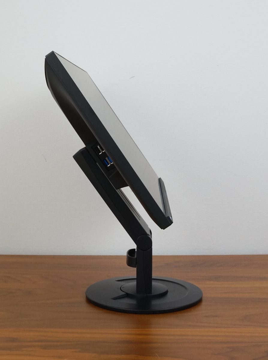 Die seitliche Drehfunktion wird über einen Drehteller im Fuß ermöglicht, wobei der ganze Standfuß mitdreht. Mit 344° kann der EIZO EV2400R fast einmal um die eigene Achse rotiert werden.