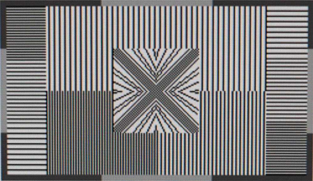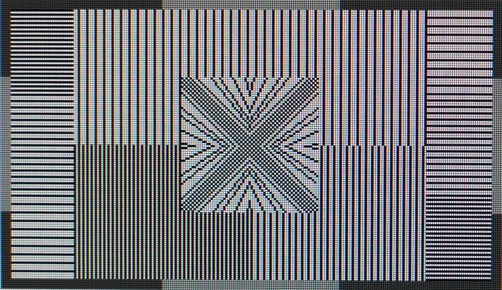 Im OSD-Menü unter „Signal“ gibt es zwar eine Option zur Schärferegelung, diese ist jedoch in der nativen Auflösung deaktiviert, was absolut richtig ist. Bei interpolierten Auflösungen kann die Schärfe angepasst werden, um die Schriftschärfe zu optimieren. Unserer Meinung nach ist dies der einzige sinnvolle Einsatzbereich für eine Schärferegelung.