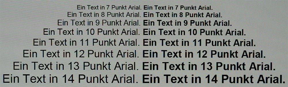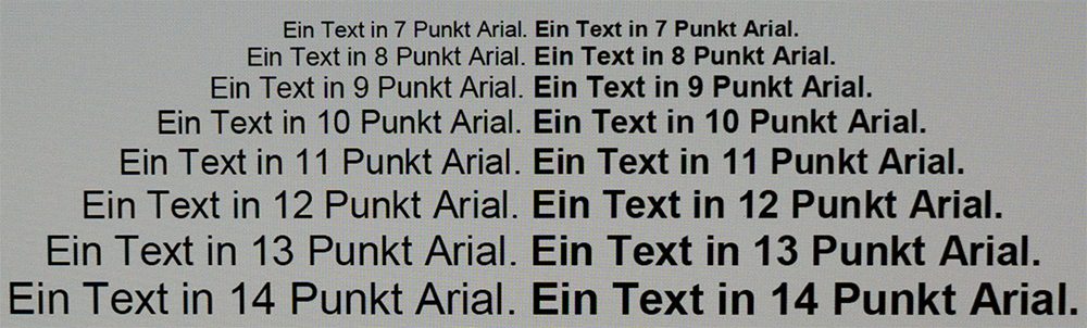 Die Interpolationsfähigkeiten des EIZO EV3240X sind erstklassig. Das gilt sowohl für die Skalierungsmöglichkeiten als auch für die Umsetzung. Die Schärfe bei nativer Auflösung ist erwartungsgemäß sehr gut. Bei 2560 x 1440 sieht man, dass die Schrift geringfügig fetter dargestellt wird. Farbsäume treten nicht auf.