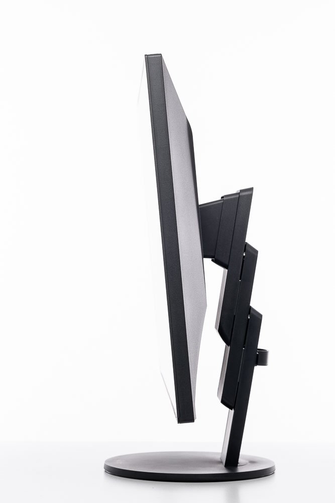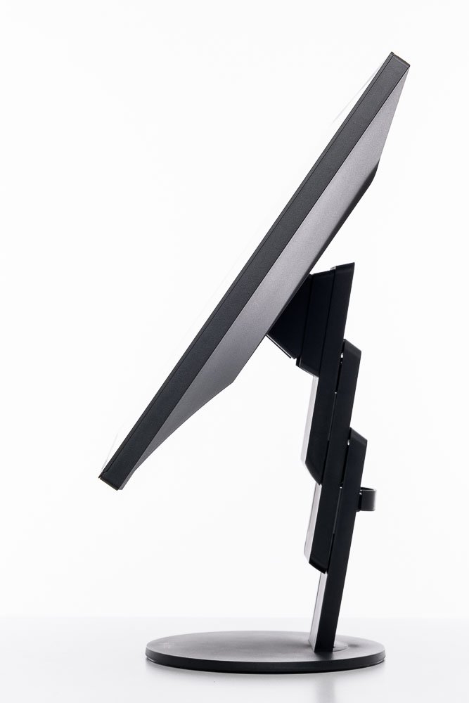 Aufgrund einer Pixeldichte von 140 dpi werden Bilder und Texte gestochen scharf und klar dargestellt. Da das Bild ferner in allen Helligkeitsstufen flimmerfrei ist, werden die Augen auch an einem langen Arbeitstag entlastet. Auf Wunsch wird die Helligkeit dabei automatisch per Sensor an die Umgebungsbeleuchtung angepasst. Für perfekte Ergonomie soll auch der platzsparende Standfuß sorgen, der um 195 mm höhenverstellbar ist und einen Schwenkwinkel von 344 Grad bietet. Optional ist sogar eine Thin-Client-Halterung erhältlich, um beispielsweise einen Mini-PC an der Rückseite des Monitors zu befestigen.