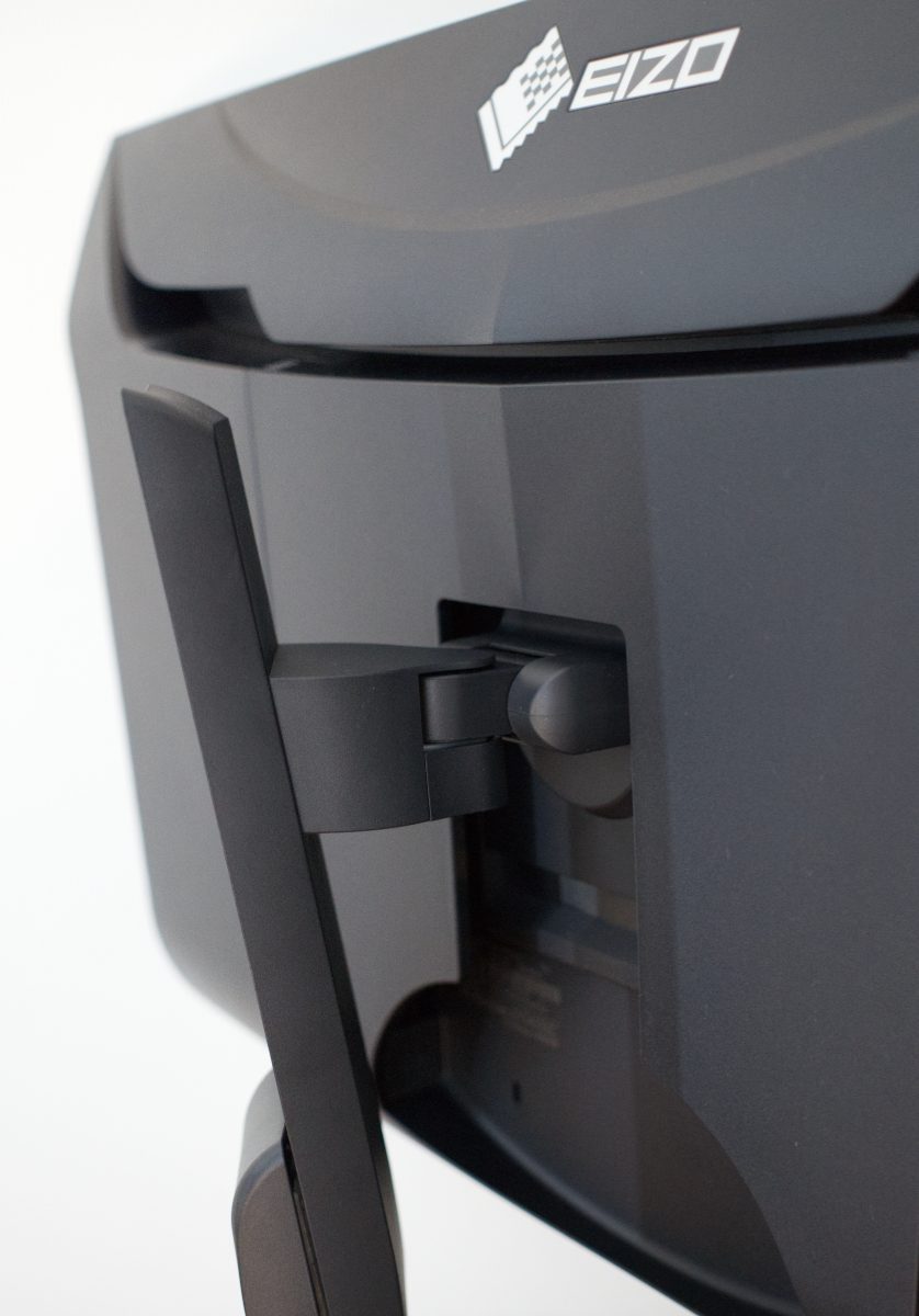 Ansonsten zeigt EIZO eine vorbildliche Umsetzung der weiteren ergonomischen Funktionen, sowohl im Umfang als auch in der Mechanik. Die Neigung ist flexibel von -5 bis +35 Grad einstellbar. Der Bildschirm lässt sich seitlich um 90° nach rechts und links drehen. Eine Drehung um 90° ins Hochformat (Pivot) ist nicht möglich, was bei einem Curved-Monitor ohnehin keinen Sinn ergeben würde.