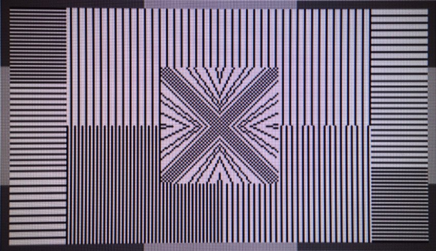 Zusätzlich bietet der iiyama XUB2792UHSU einen Schärferegler an, im OSD als „Scharf“ und „Weich“ bezeichnet. Dieser lässt sich von 1 bis 6 in Einser-Schritten verändern. Werkseitig ist 3 eingestellt, und der Schärferegler steht auch bei nativer Auflösung zur Verfügung. Allerdings wird bereits mit der Einstellung 4 ein unnatürlich überschärftes Bild angezeigt. Von Stufe 4 bis 6 ist jedoch keine weitere Veränderung mehr sichtbar. Bei nativer Auflösung sollte der Schärferegler auf 3 belassen werden, je nach interpolierter Auflösung kann eine Erhöhung auf 4 aber durchaus sinnvoll sein.