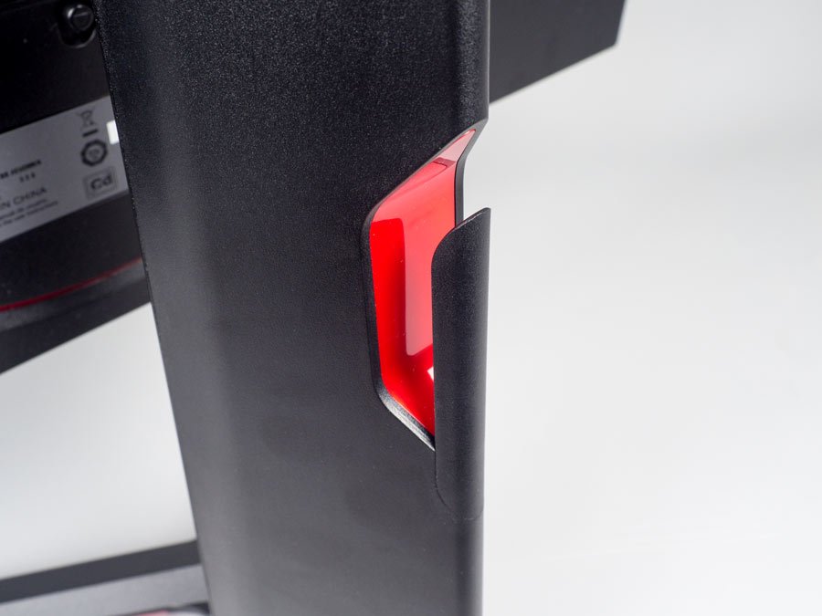 Designtechnisch zeigt sich der LG 27GP850 sehr schön minimalistisch. Die roten Akzente sind sparsam und gekonnt eingesetzt. Einzig der knallgrüne G-Sync-Sticker stört etwas in dem Bild, kann aber ohne Weiteres entfernt werden. Auf ein Beleuchtungskonzept, das sich bei dieser Baureihe am rückseitigen runden Gehäuse befindet, muss man bei diesem Modell verzichten, was uns allerdings nicht weiter stört. Die Verarbeitung liegt auf einem hohen Niveau, und das Panel ist ordentlich in das schmale Außenband eingepasst. Auch die beweglichen Teile laufen ruhig und sauber.