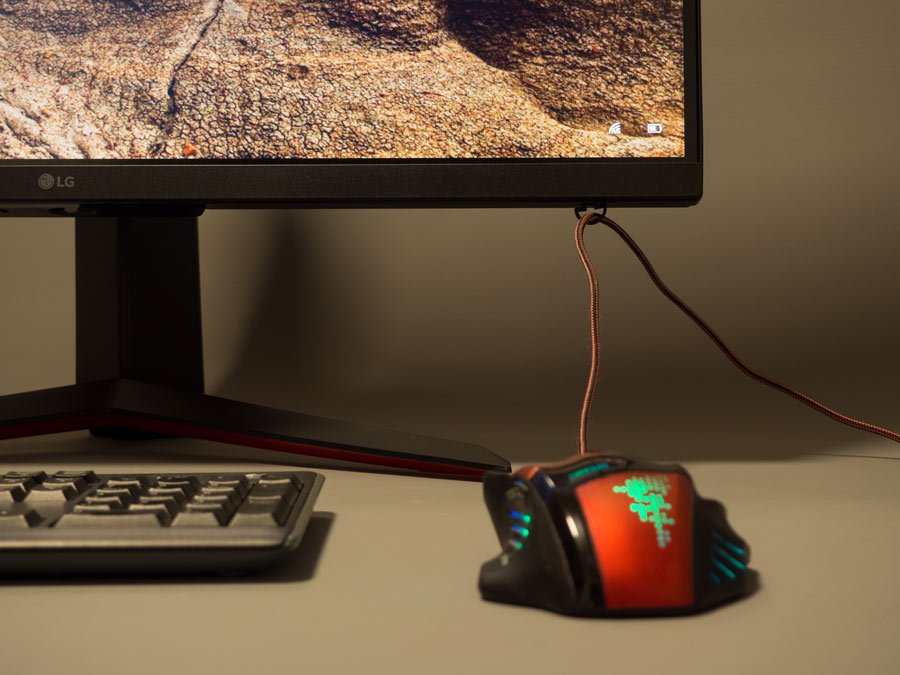 Auf der rechten Seite lässt sich die kleine Klemme samt Mauskabel unterhalb des Rahmens einklicken, um die Vorspannung des Kabels zu reduzieren.