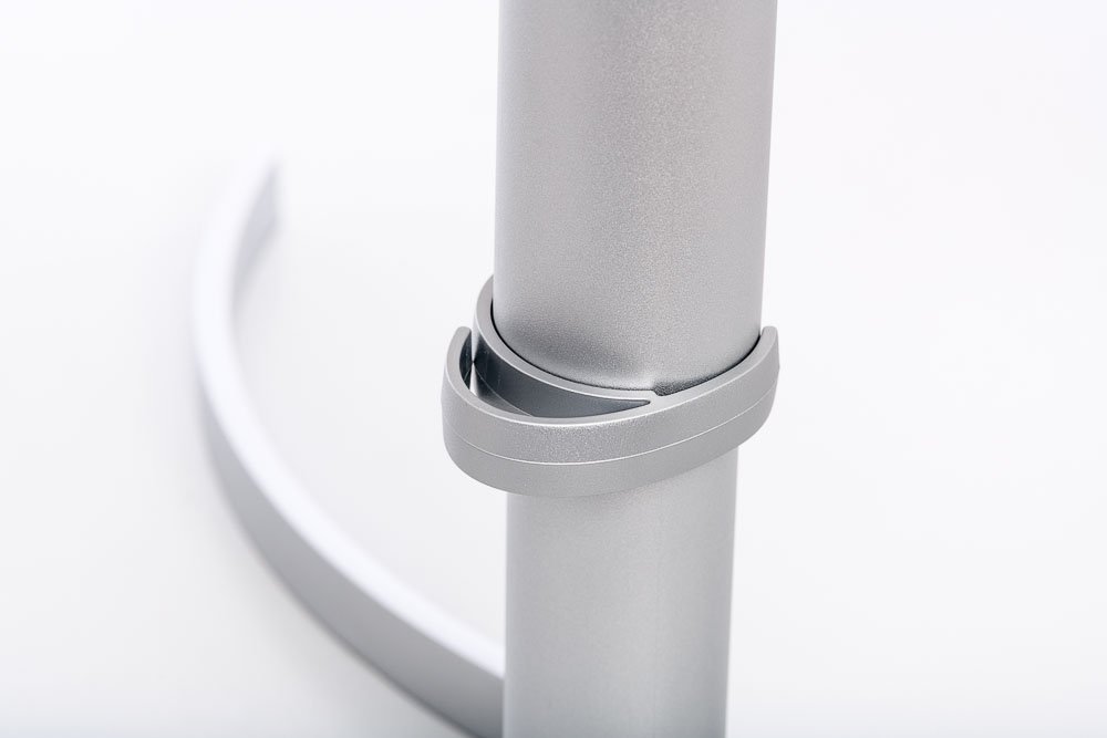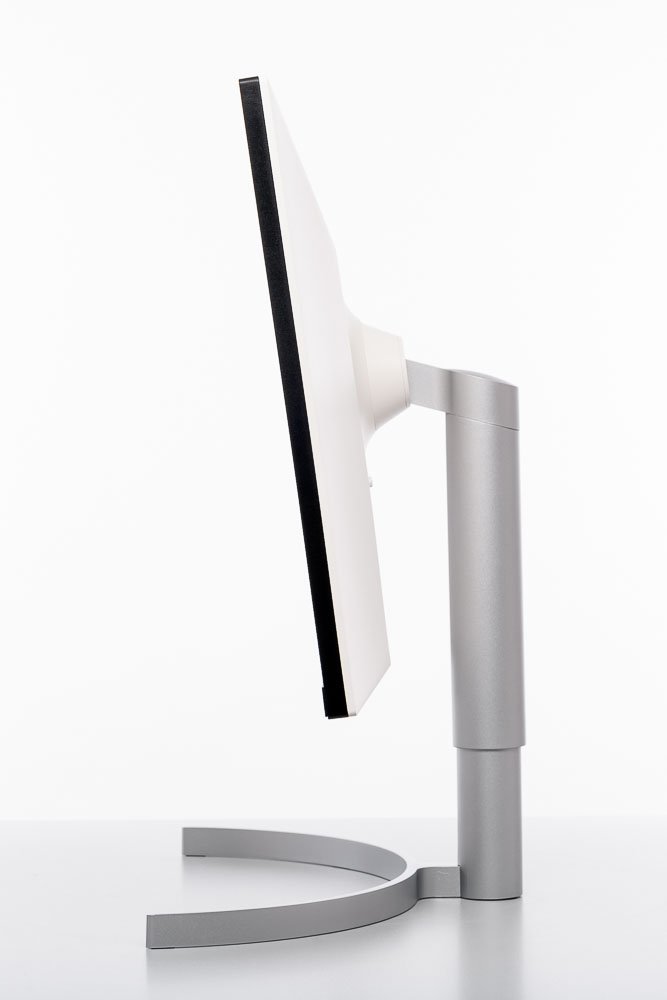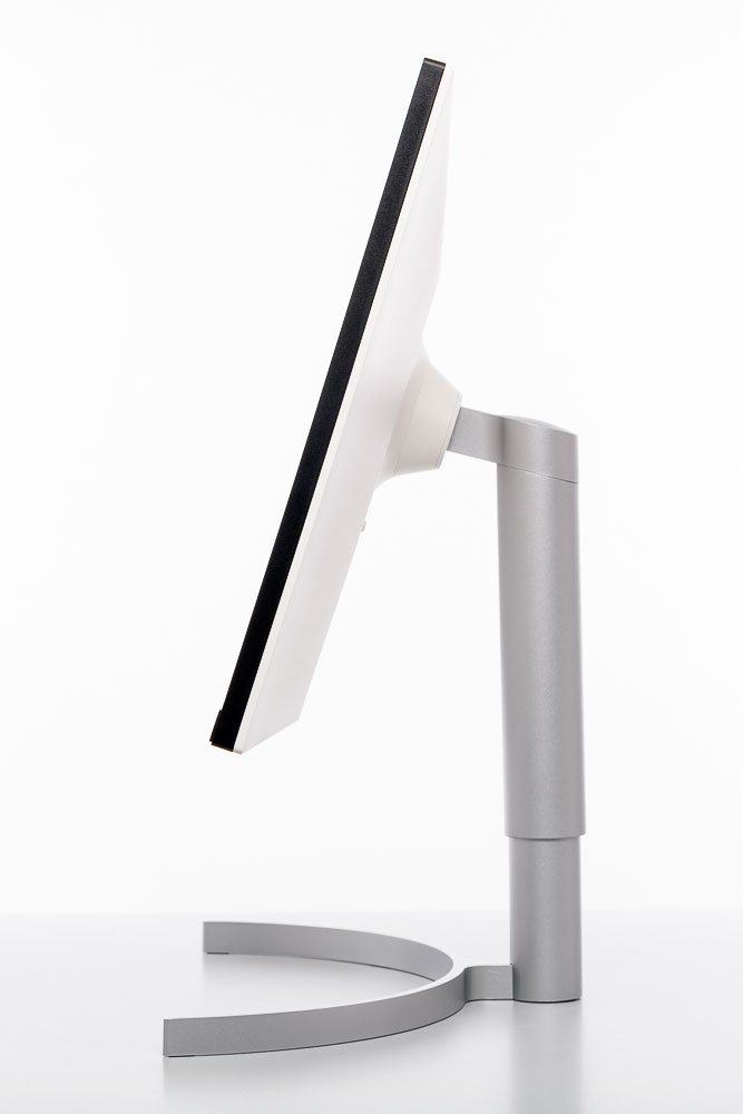 Der ArcLine-Standfuß sieht nicht nur nach gebürstetem Aluminium aus, sondern ist tatsächlich komplett aus Metall. Lediglich die Ummantelung des Standbeins ist aus Kunststoff, aber optisch vom Standfuß kaum zu unterscheiden.