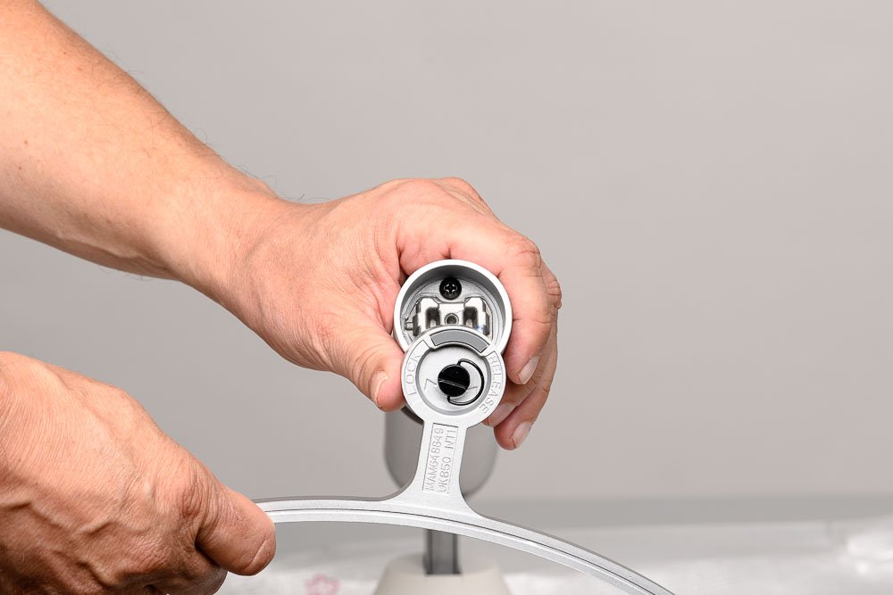 Die Montage ist wie von LG gewohnt denkbar einfach. Das Standbein muss auf der Display-Rückseite nur eingeklinkt werden und lässt sich auf Knopfdruck wieder lösen. Der ArcLine-Standfuß wird dann noch aufgesteckt und werkzeugfrei mittels Flügelschraube fixiert.