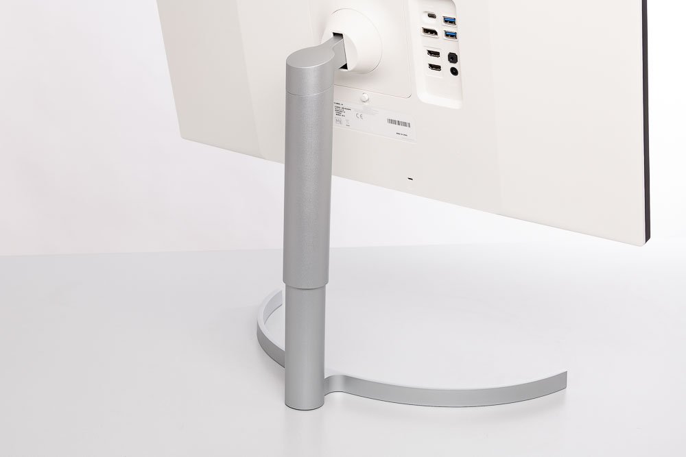 Die Mechanik des Standbeins ist nicht so raffiniert wie beim LG 32UD99 und erfordert vor allem bei der Höhenverstellung schon etwas initialen Kraftaufwand, der einen dann schnell über das Ziel hinausschießen lässt. Der LG 32UD99 kostet allerdings das Doppelte.