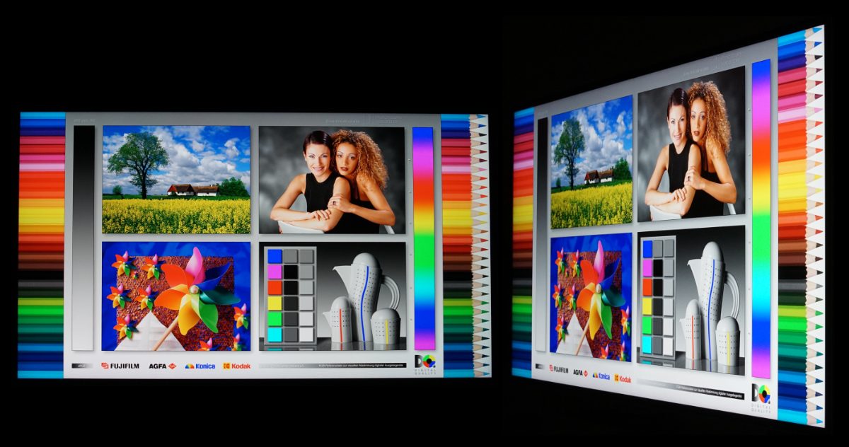 Dank des verbauten IPS-Black-Panels bleiben die Farben selbst bei weiteren Blickwinkeln stabil. Insgesamt sind die Blickwinkel sehr stabil. Die Blickwinkelstabilität ist als gut bis sehr gut zu werten.