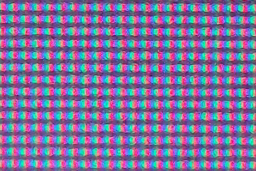 Mikroskopischer Blick auf die Subpixel mit Fokus auf die Bildschirmoberfläche: Der LG 32U990A besitzt eine matte Oberfläche mit mikroskopischen Vertiefungen zur Diffusion.