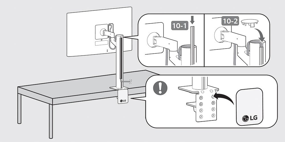 Für mich wäre interessant, ob man die Kabel bei Montage in der Bohrung des Schreibtischs auch durch den Standfuß führen kann (also mit durch das Bohrloch).
