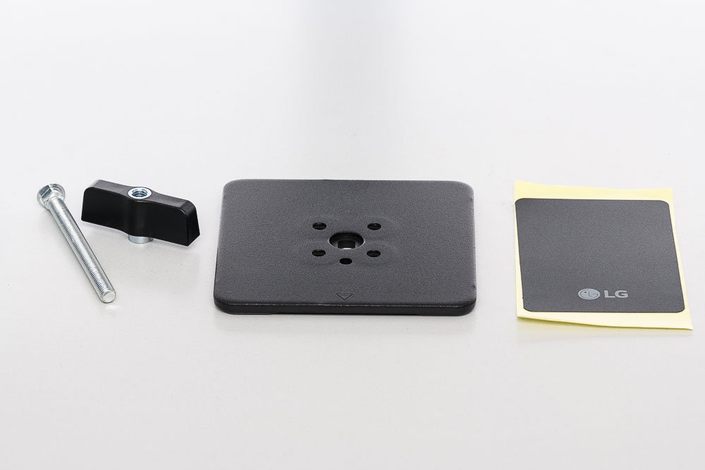 Zum Lieferumfang gehört auch noch eine weitere, sorgsam verpackte Montageplatte. Sie wird nur benötigt, wenn man den Monitor nicht an der Tischaußenkante, sondern in einer entsprechenden Bohrung in der Tischplatte montieren möchte.