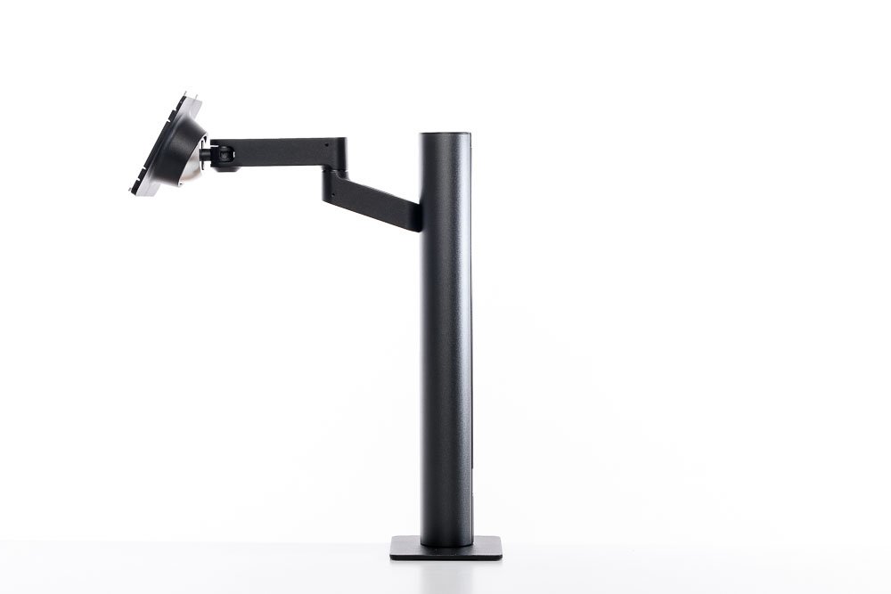 Das Standbein selbst lässt sich um ca. 100° in beide Richtungen um die eigene Achse drehen. Der Arm hat in der Mitte ein „Ellenbogengelenk“, das sich horizontal bewegen lässt. Dazu kommt der Spielraum des Kugelgelenks an der Verbindungsstelle zum Display.