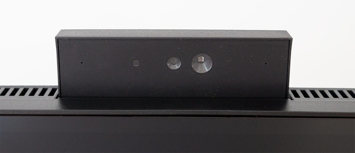 Die Kamera befindet sich im oberen Bereich des Moduls. Bei einer Körpergröße von 1,83 cm und in der niedrigsten Höheneinstellung war die Darstellung optimal. Es ist nicht möglich, die Kamera manuell auszurichten – weder die Neigung noch das Schwenken des Kameramoduls nach links oder rechts. Insofern muss bei kleineren Personen eventuell die Sitzhöhe über den Bürostuhl angepasst werden.